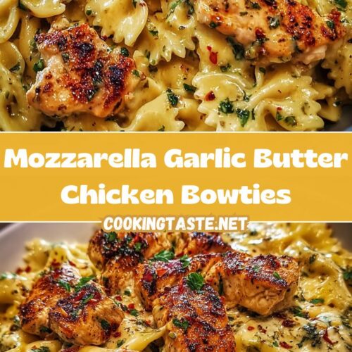 Discover the ultimate comfort food with this Mozzarella Garlic Butter Chicken Bowties recipe! Tender chicken pieces are sautéed to golden perfection and tossed with al dente bowtie pasta in a luxuriously creamy garlic butter sauce. The star of this dish is the rich, velvety mozzarella cream sauce that coats every fold of the pasta, creating an irresistible combination of flavors and textures. Perfect for busy weeknights or special family dinners, this one-pan wonder comes together in just 30 minutes. The aromatic garlic butter base infuses the chicken with incredible flavor, while the combination of mozzarella and Parmesan cheese creates that restaurant-quality creaminess you crave. Each bite delivers tender, juicy chicken complemented by perfectly cooked bowtie pasta that catches and holds the creamy sauce in its folds. The garlic butter adds a rich, savory depth that makes this dish absolutely irresistible. Whether you’re cooking for your family or entertaining guests, this recipe is guaranteed to impress and will have everyone asking for seconds! The beauty of this recipe lies in its simplicity – despite tasting like it came from an upscale Italian restaurant, it uses everyday ingredients you probably already have in your kitchen. The one-pan cooking method means minimal cleanup, making it perfect for those hectic weeknight dinners when you want something special without the fuss.